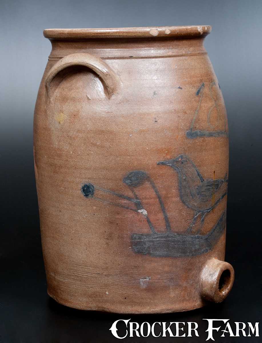 Rare Stoneware Water Cooler w/ Bird-on-Branch and 1878 Date, probably Midwestern