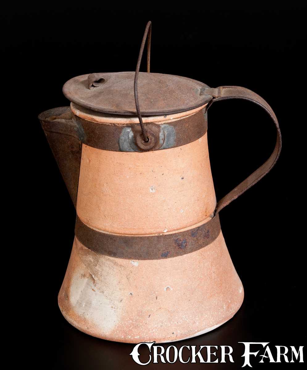 Unusual Zanesville, Ohio, Pottery and Tin Coffeepot, late 19th century