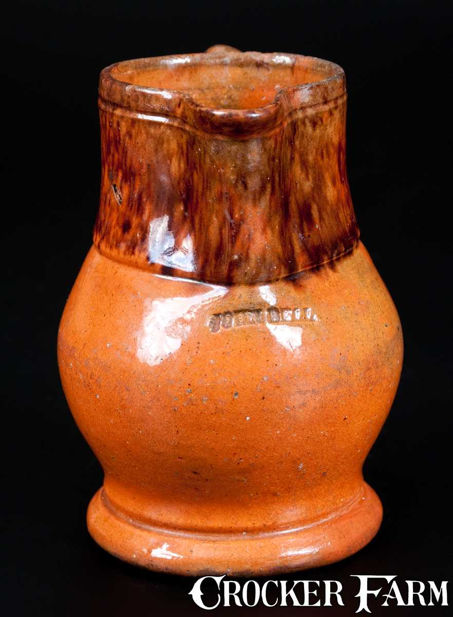 Scarce Glazed JOHN BELL (Waynesboro, PA) Redware Pitcher