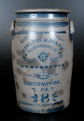 10 Gal. JAS. HAMILTON & CO. / GREENSBORO, PA Stoneware Jar w/ Stenciled Eagle and Freehand Decoration