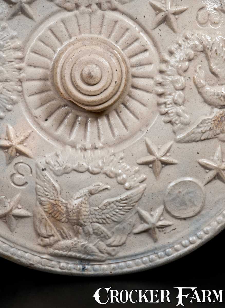 Exceptional Albany Stoneware Lid w/ Patriotic Eagles and Stars att. M. Tyler, circa 1835