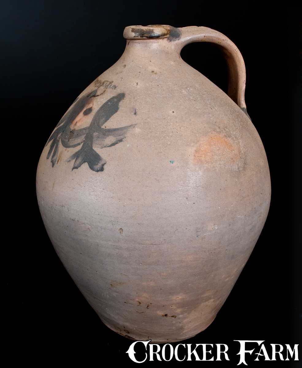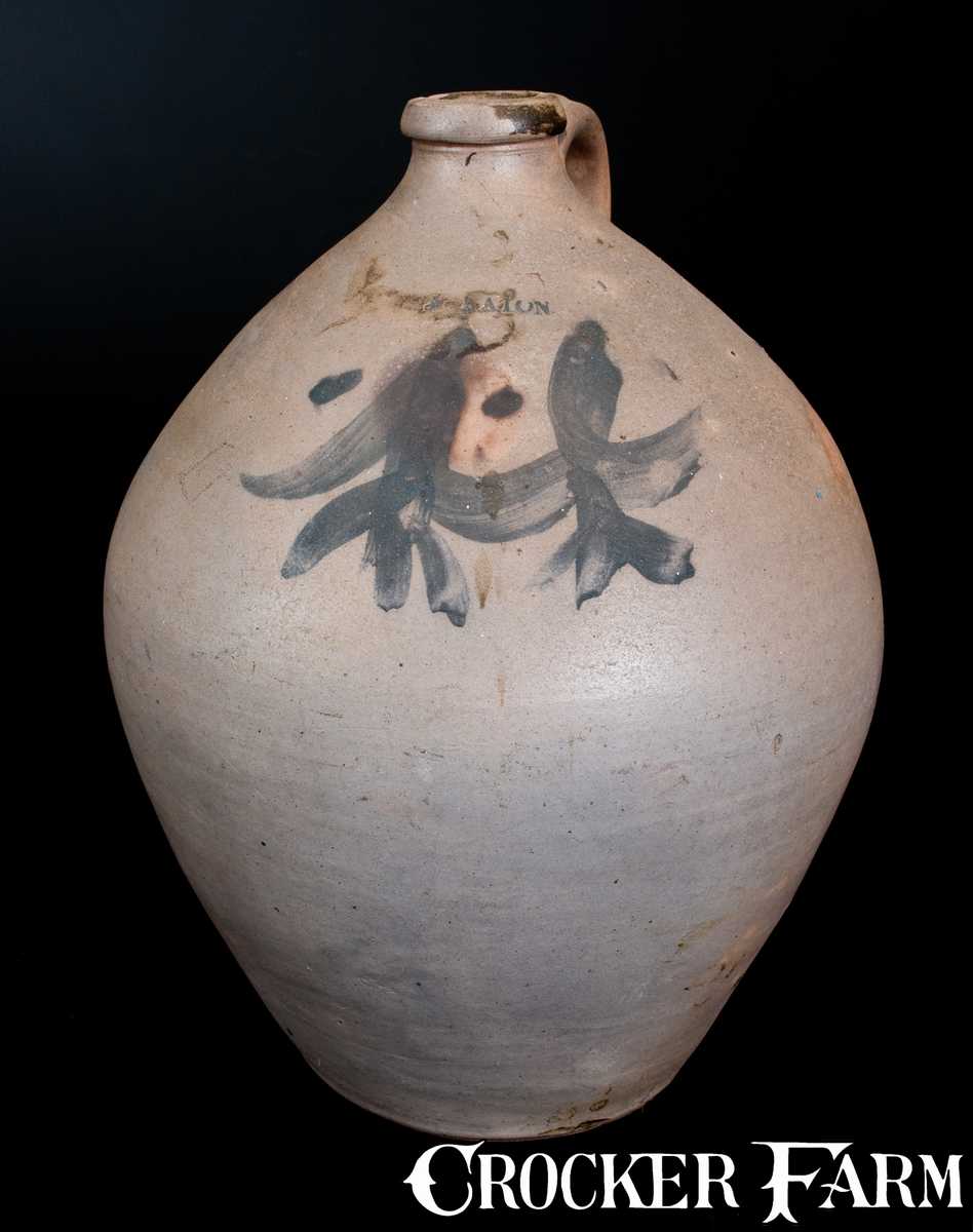 Rare J. EATON, South River, NJ Ovoid Stoneware Jug w/ Brushed Swag Decoration