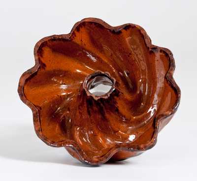 Unusual Small I. BELL Redware Turk's Head Mold with Striped Manganese Decoration