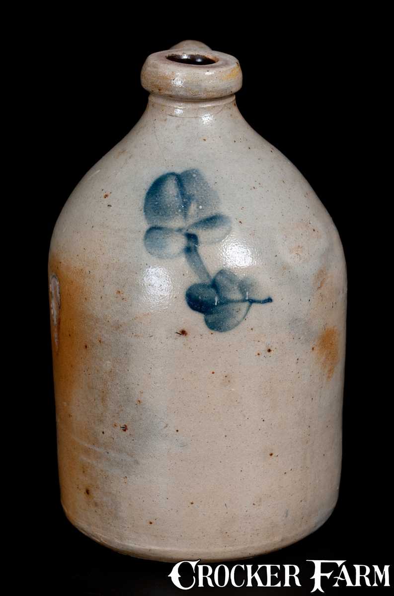 Half-Gallon Stoneware Jug with Floral Decoration, possibly Huntington, Long Island