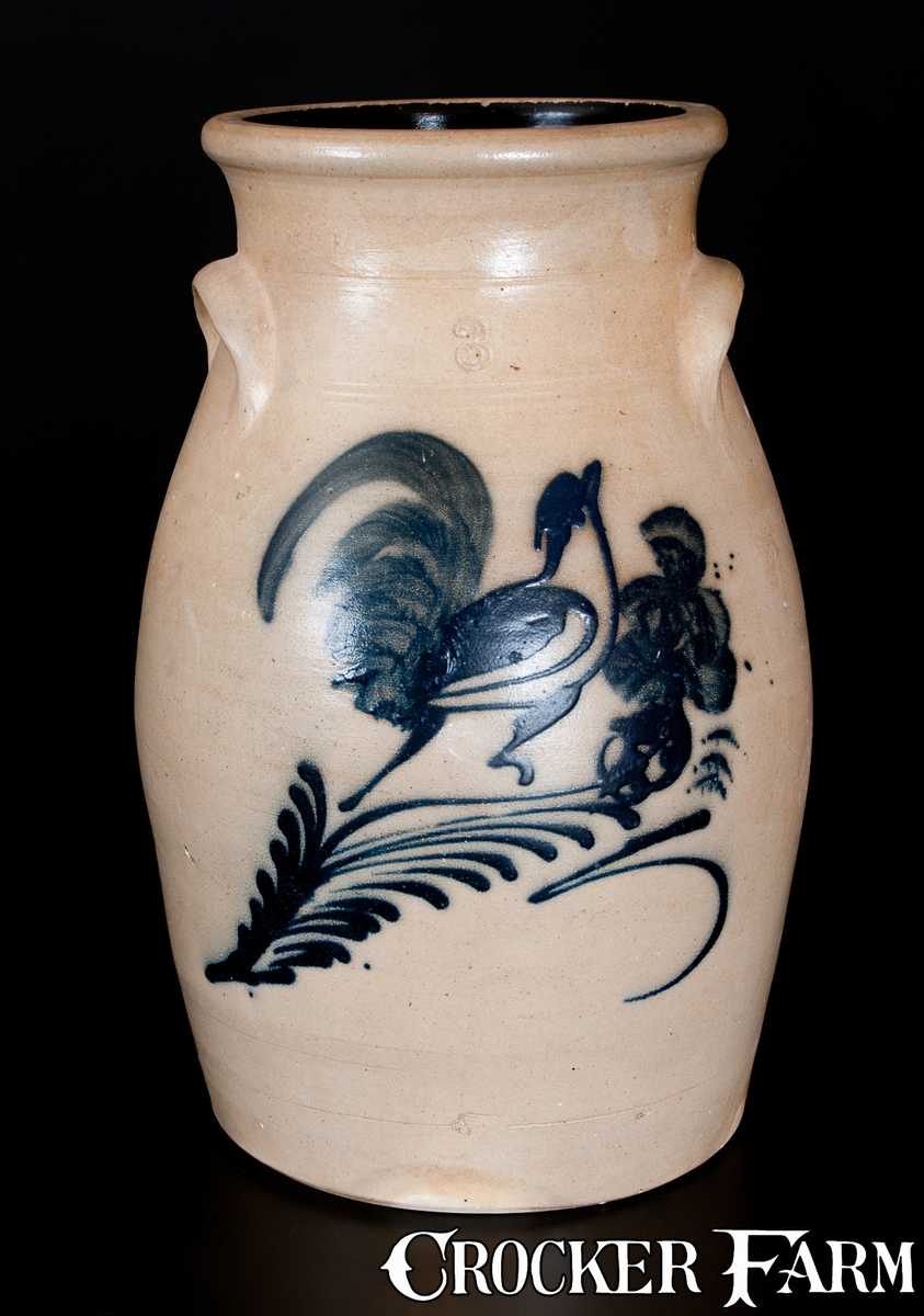 Stoneware Churn with Rooster Decoration att. Whites Pottery, Utica, NY