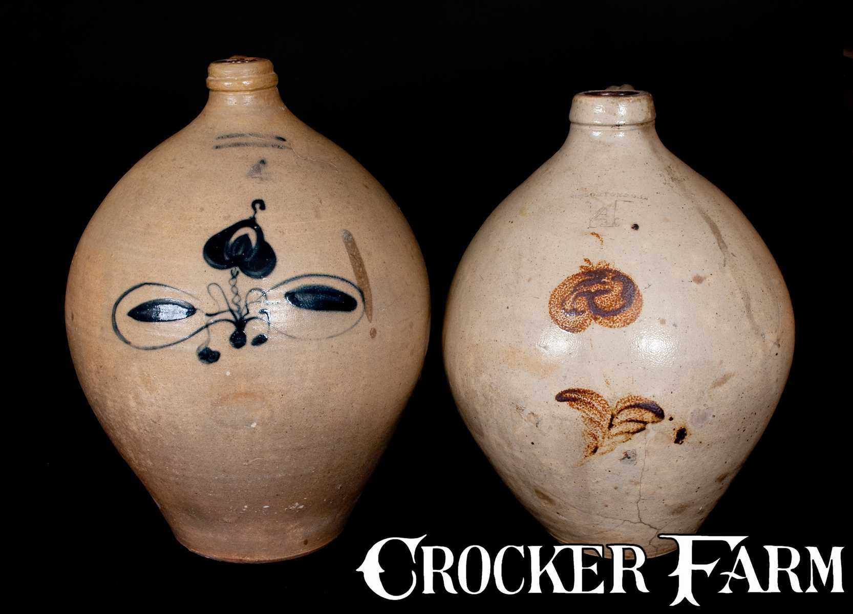 Lot of Two: 4 Gal. Ovoid Stoneware Jugs, L. NORTON & SON and JULIUS NORTON / BENNINGTON, VT