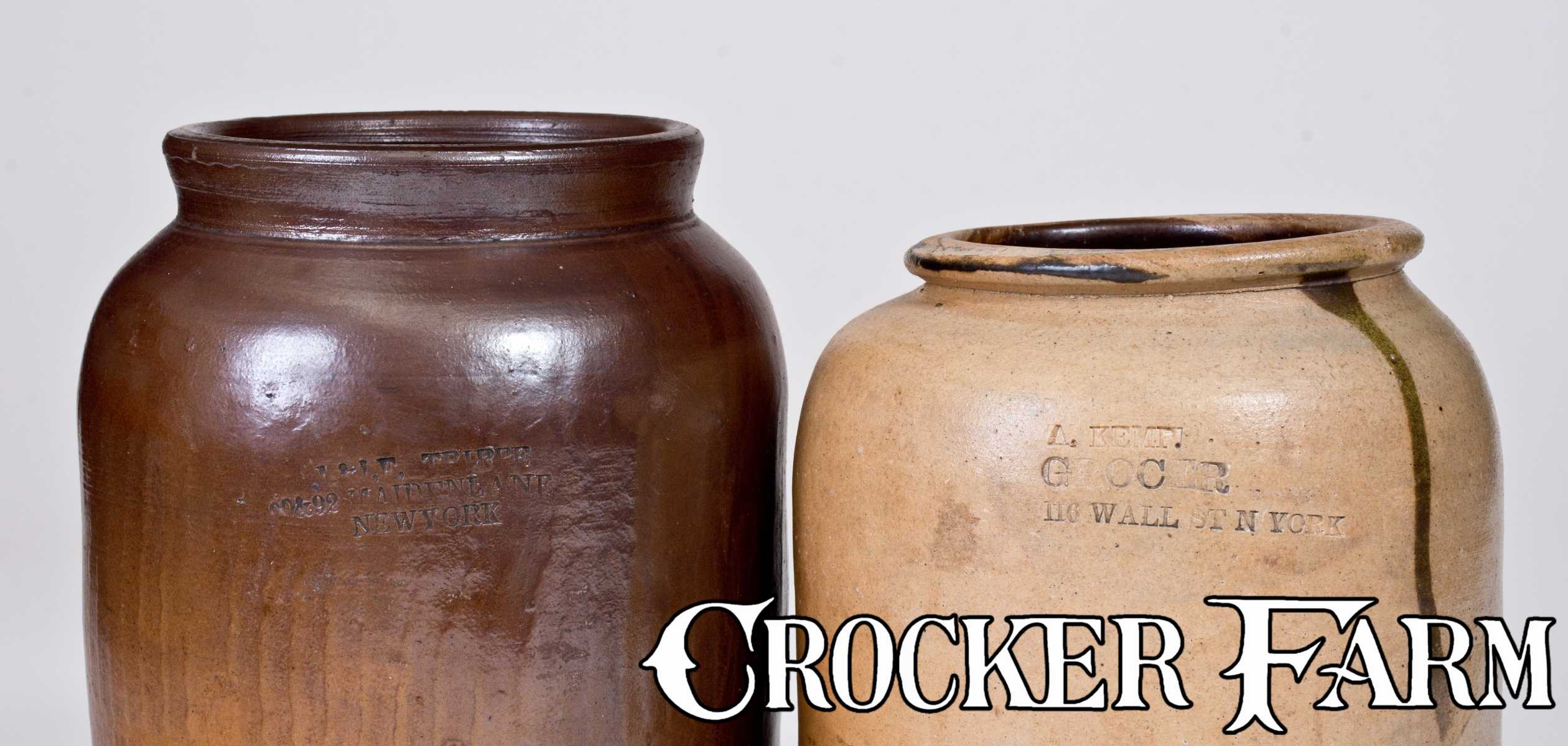 Lot of Two: Stoneware Jars with Impressed NEW YORK Advertising incl. WALL STREET Example