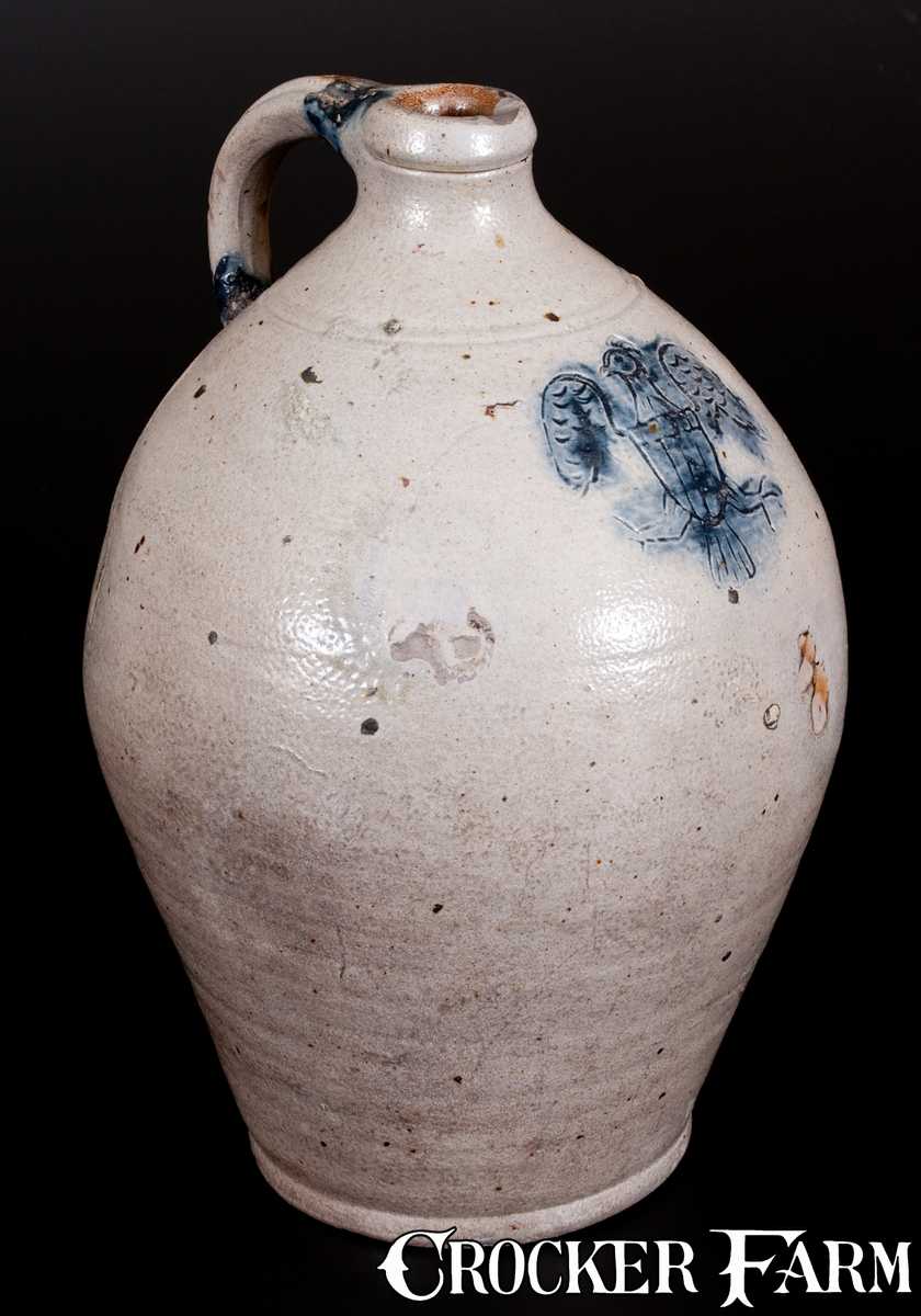 Rare 3 Gal. Stoneware Jug with Impressed Federal Eagle Design, probably Connecticut, c1820