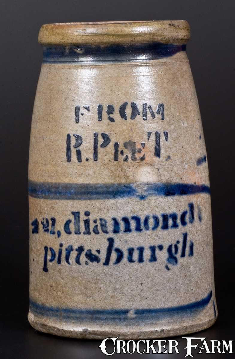 Unusual Stoneware Striped Wax Sealer w/ Stenciled Pittsburgh Advertising