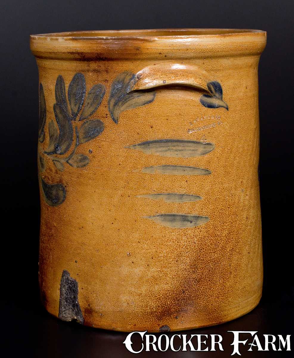 J. SWANK & CO. / JOHNSTOWN, PA Stoneware Crock with Cobalt Floral Decoration