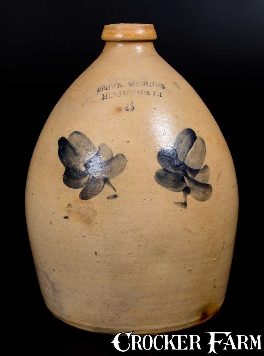 Three-Gallon BROWN. BROTHERS / HUNTINGTON L.I. Stoneware Jug