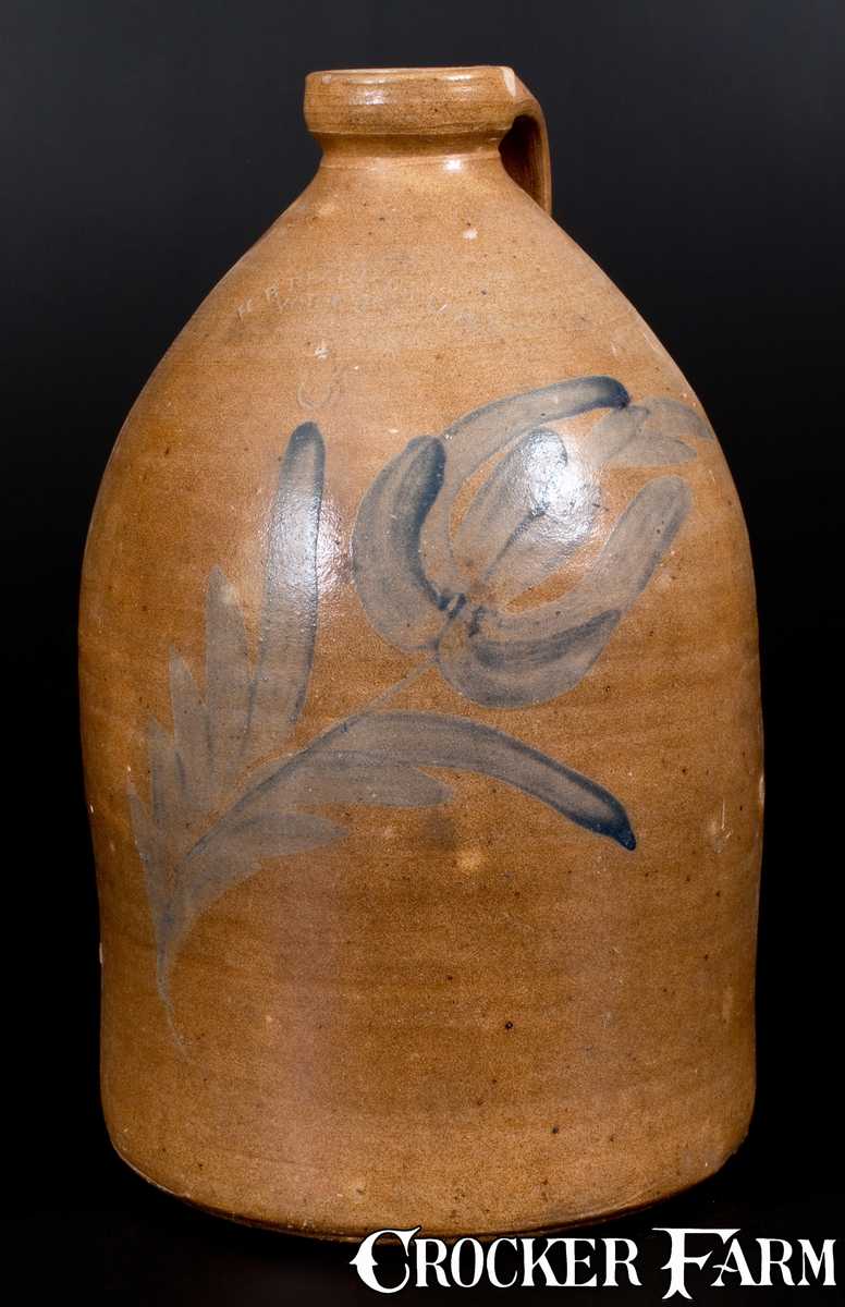 Three-Gallon H.B. PFALTZGRAFF / YORK, PA Stoneware Jug w/ Cobalt Floral Decoration