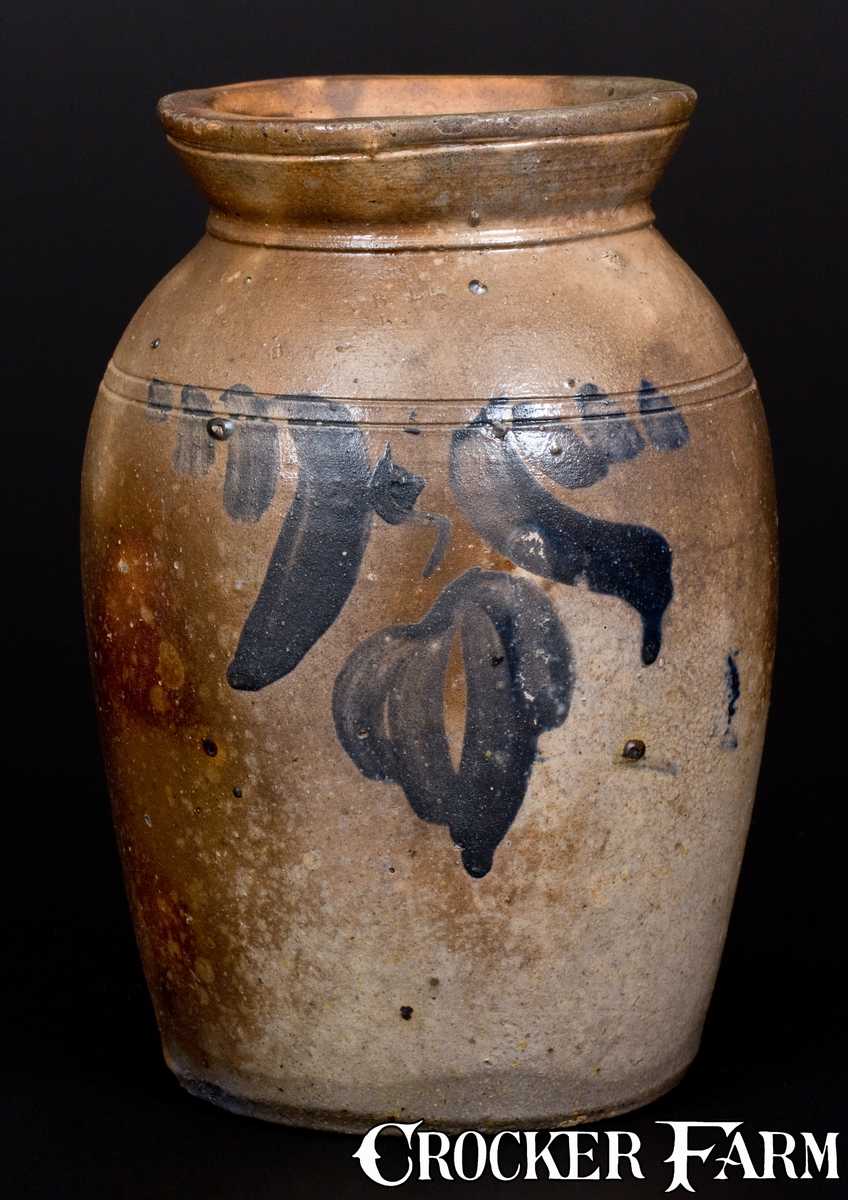 SOLOMON BELL / STRASBURG / Va. Stoneware Canning Jar w/ Cobalt Floral Decoration