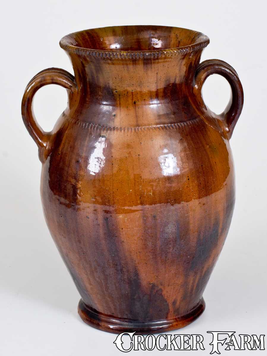 Open-Handled Redware Vase, att. Jacob Medinger, Limerick Township, Montgomery County, PA
