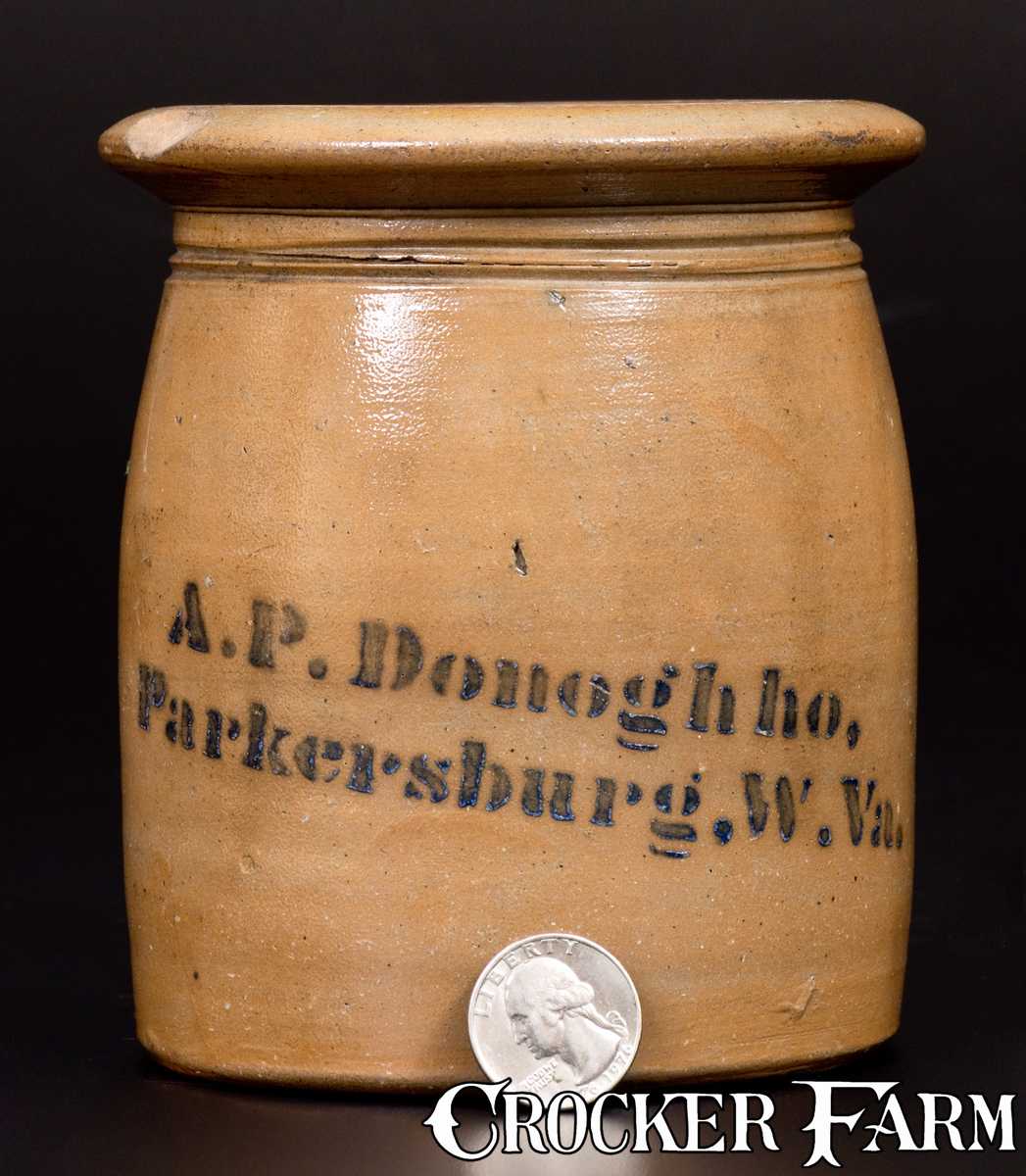 Rare Misspelled "A. P. Donoghho / Parkersburg, W. Va." Small Stoneware Canning Jar