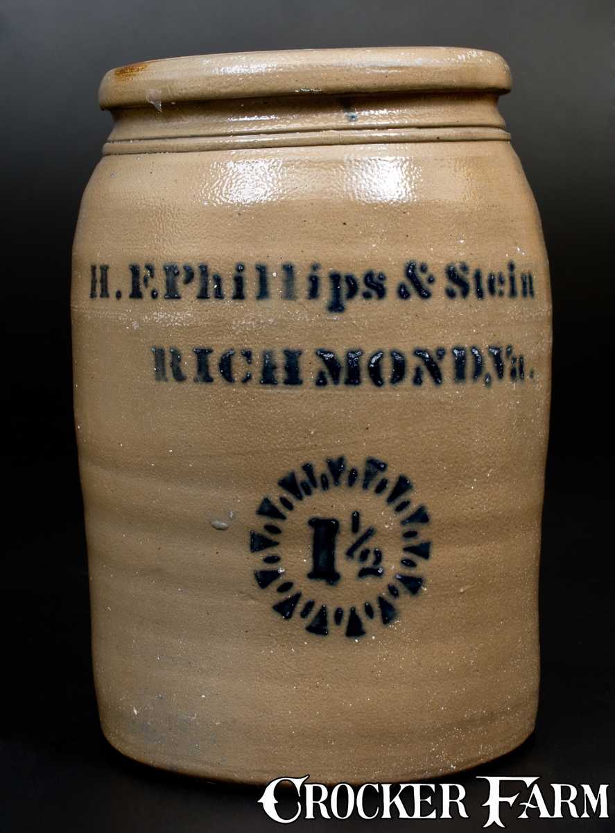 Rare C. F. Phillips & Stein / RICHMOND, Va Stoneware Advertising Jar att. A. P. Donaghho