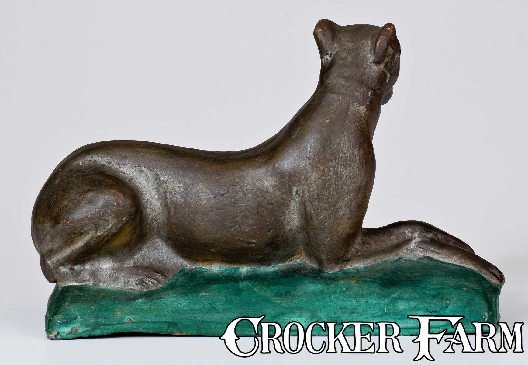 Fine Painted Redware Figure of a Whippet, attrib. John Bell, Waynesboro, PA, c1840-50