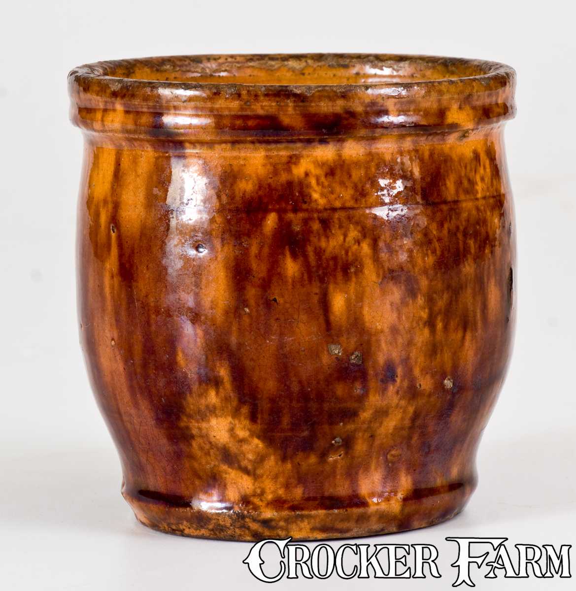 Rare Diminutive JOHN BELL / WAYNESBORO Glazed Redware Jar c1850-80