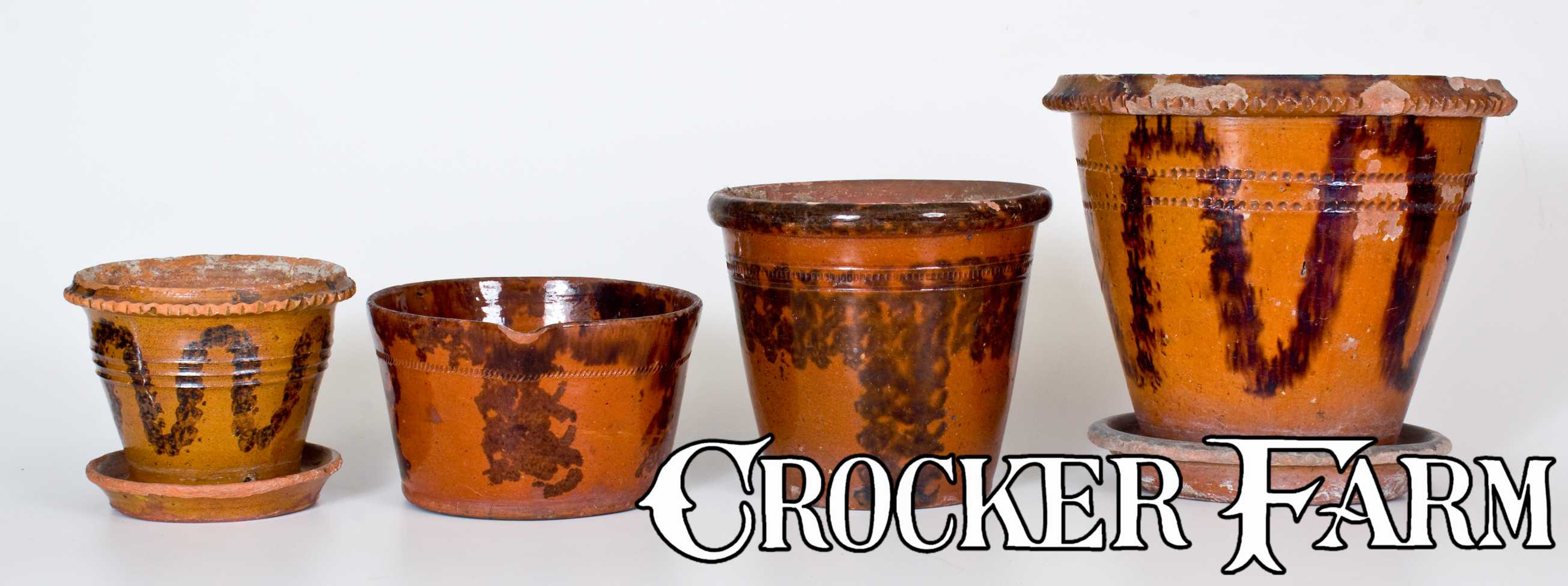 Lot of Four: Pennsylvania Redware w/ Coggled and Sponged Manganese Decoration