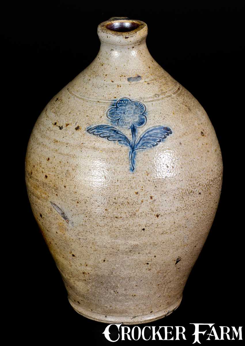 Stoneware Jug w/ Impressed Floral Decoration att. Jonathan Fenton, Boston, circa 1800