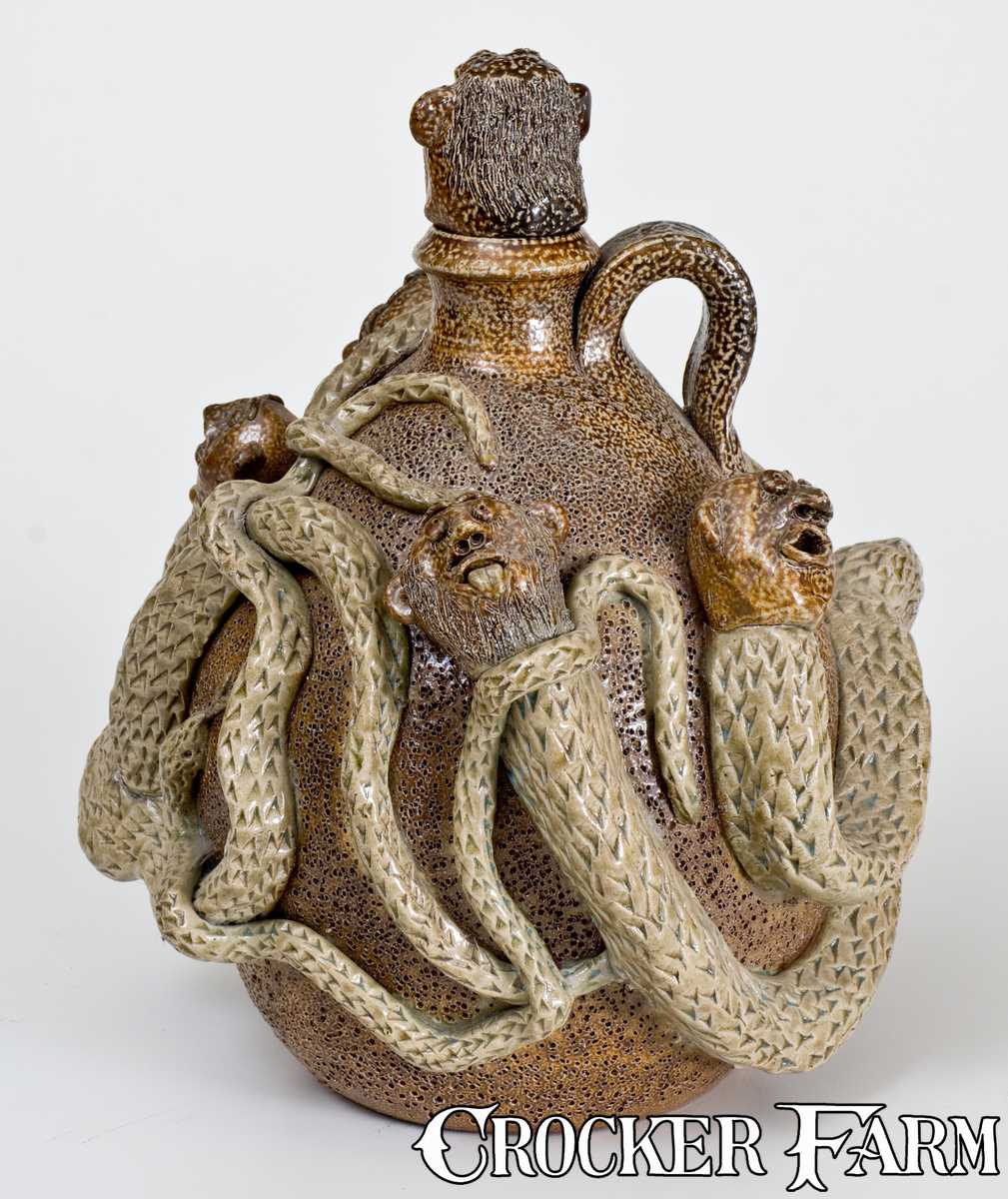 Modern Salt-Glazed Stoneware Temperance Jug, Signed "Garner", Seagrove, NC, 1992