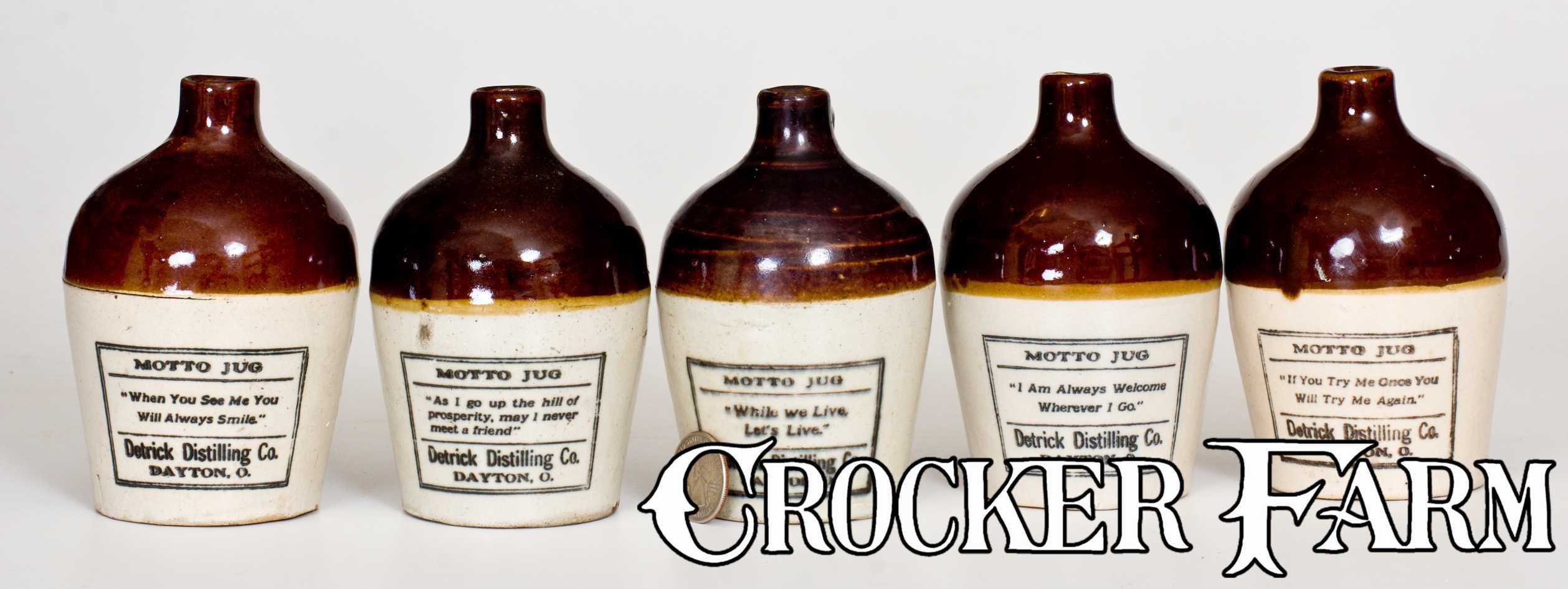 Lot of Five: DAYTON, OHIO Miniature Brown and White Motto Jugs
