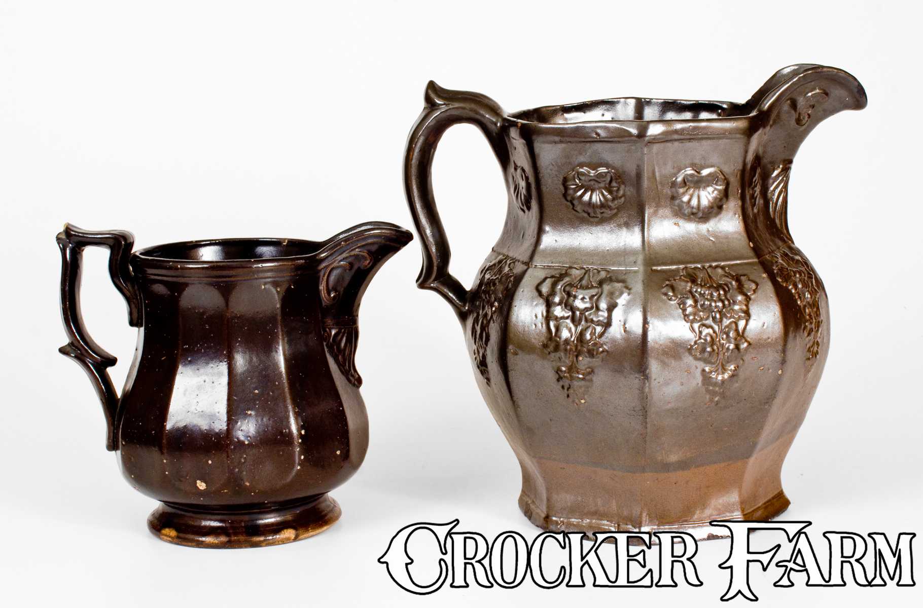 Rare Molded Stoneware Pitchers: J. T. WINSLOW / PORTLAND, S. RISLEY / NORWICH
