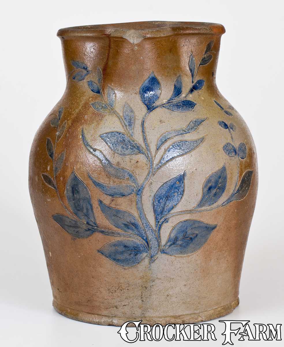 Outstanding and Rare Ohio Stoneware Pitcher w/ Elaborate Incised Foliate Design