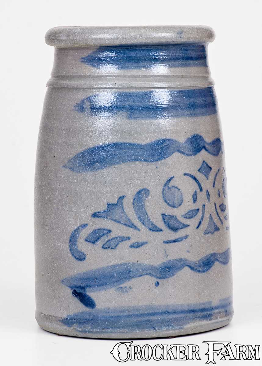 Western PA Stoneware Canning Jar w/ Striped and Stenciled Decoration