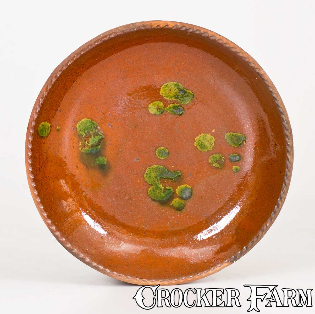 Redware Plate w/ Unusual Dripped Copper Decoration, Singer Pottery, Bucks County, PA