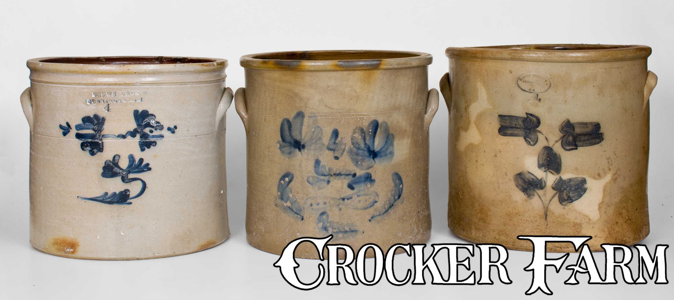 Lot of Three: 4 Gal. BROWN BROTHERS / HUNTINGTON, L.I. Stoneware Crocks