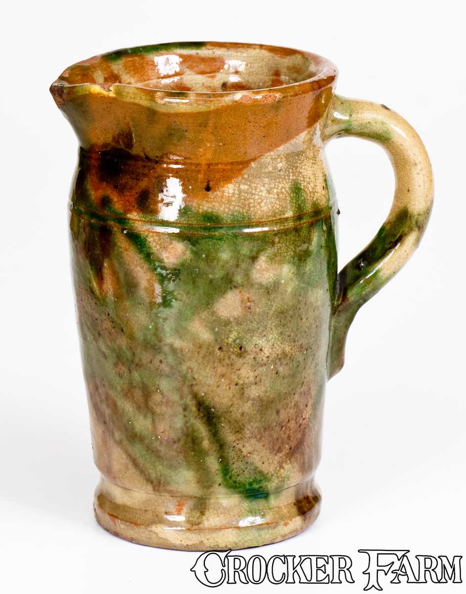 Shenandoah Valley Multi-Glazed Redware Cream Pitcher, Strasburg, VA, c1890