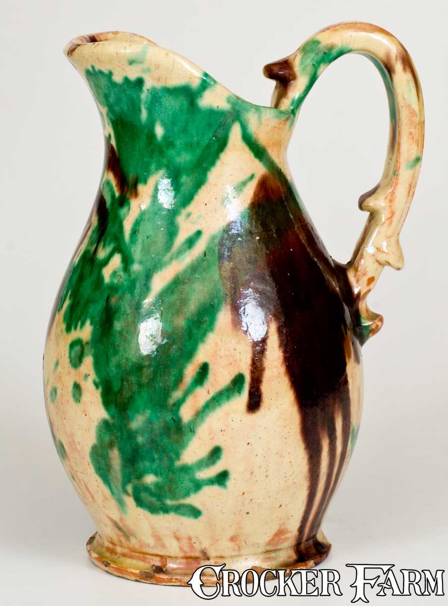 Fine Multi-Glazed Redware Wash Pitcher, Strasburg, VA, circa 1890