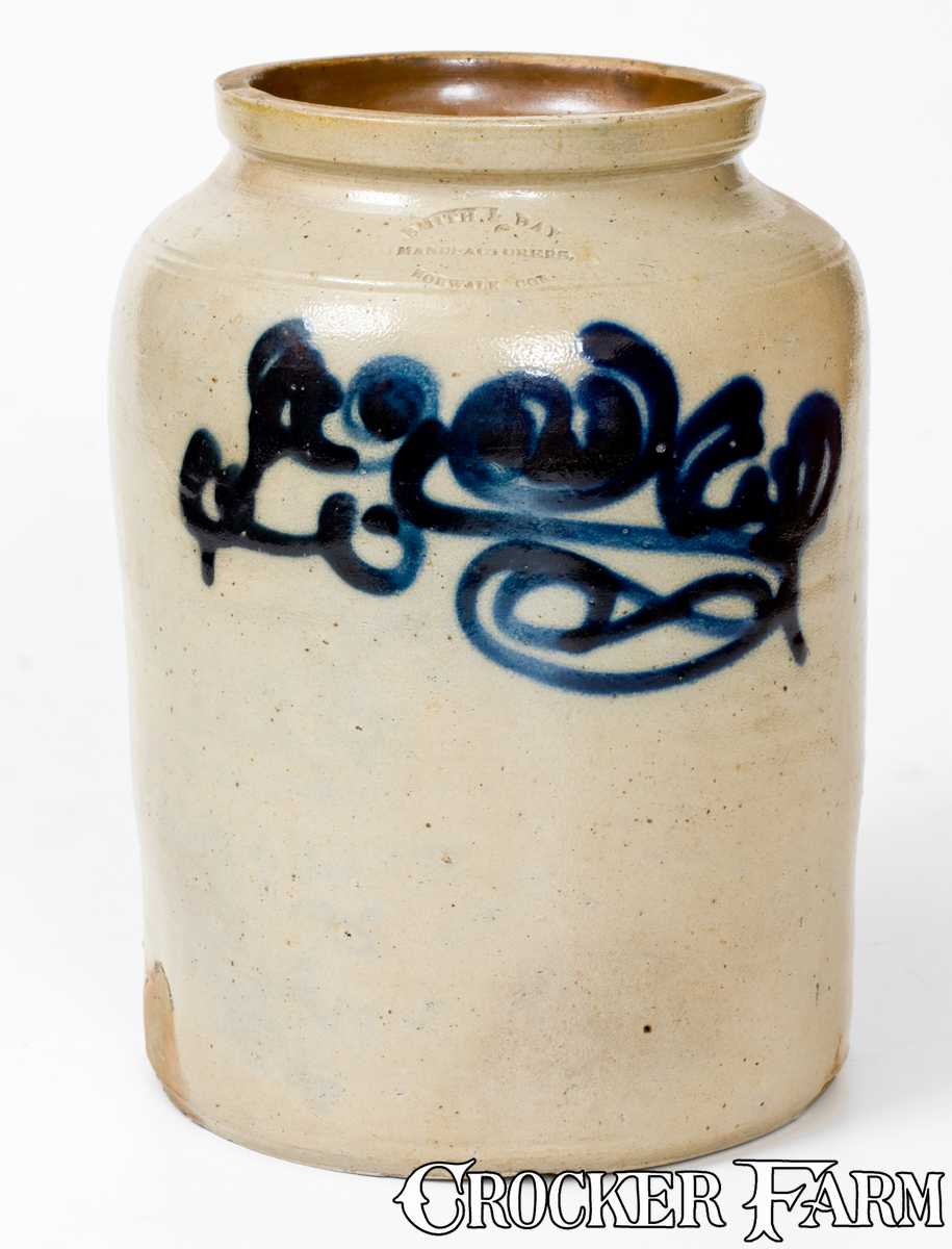 SMITH & DAY / NORWALK, CONN. Stoneware Jar with Bold Cobalt Decoration