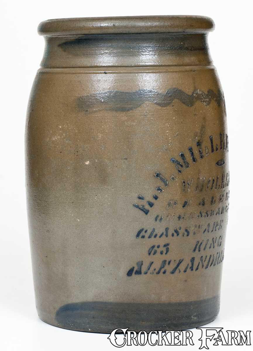 Western PA Stoneware Jar with E. J. MILLER & CO. / ALEXANDRIA, VA Stenciled Advertising