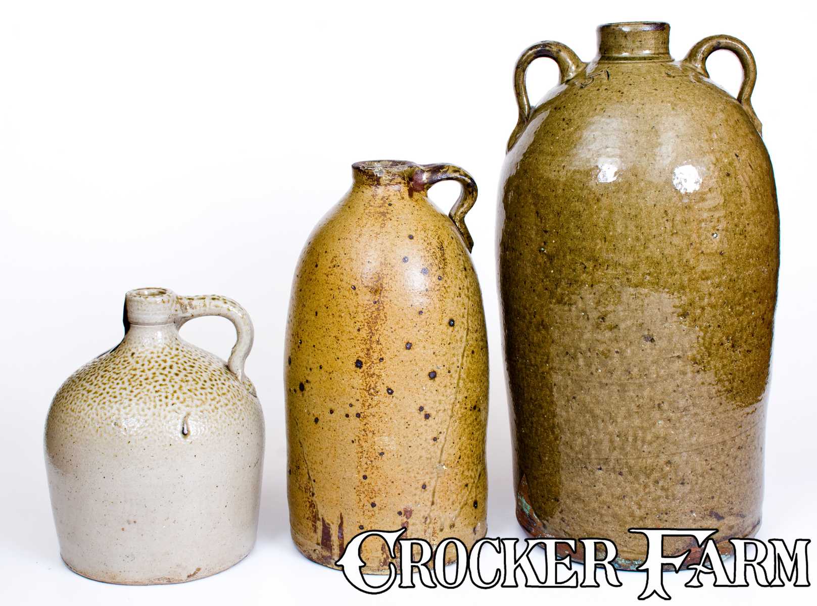 Lot of Three: Alabama Stoneware incl. 5 Gal. Double-Handled Stoneware Jug att. Rock Mills