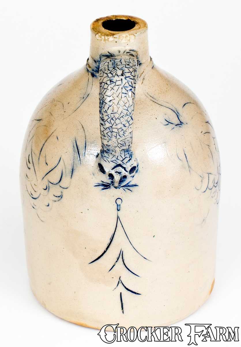 Rare Stoneware Jug with Ornate Incised Decoration of a Woman