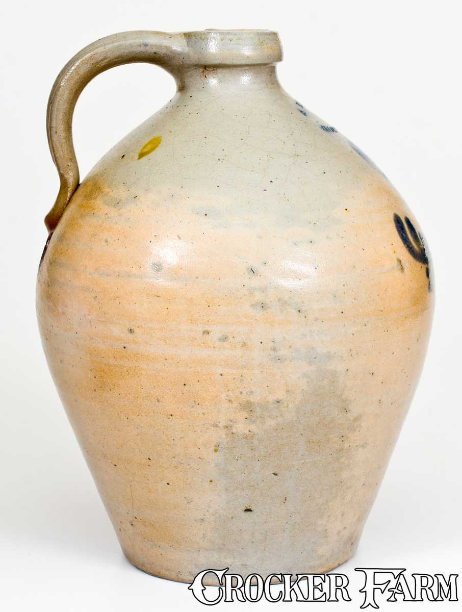 One-Gallon S. RISLEY / NORWICH Stoneware Jar with Cobalt Floral Decoration