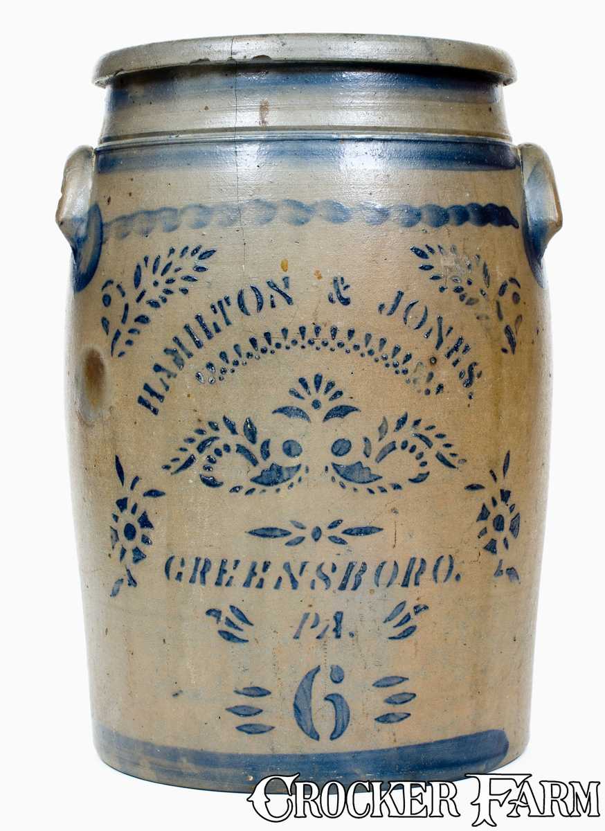 Six-Gallon HAMILTON & JONES. / GREENSBORO. / PA Stoneware Jar