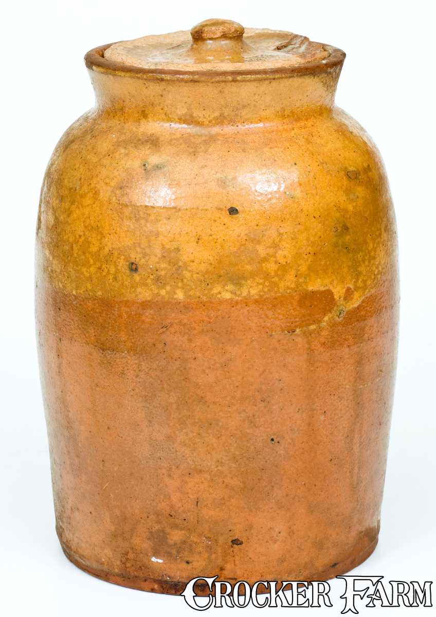 Galena Redware Pottery Preserve Jar w/ Lid and Yellow Dip