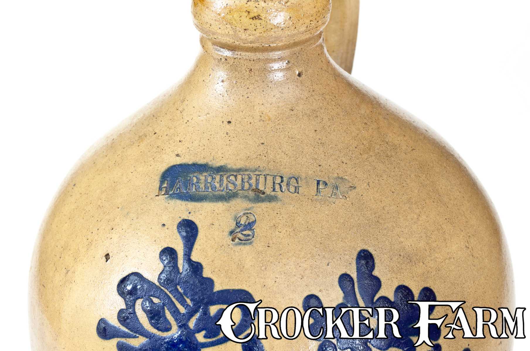 Rare HARRISBURG, PA (John Young) Stoneware Jug w/ Elaborate Slip-Trailed Design