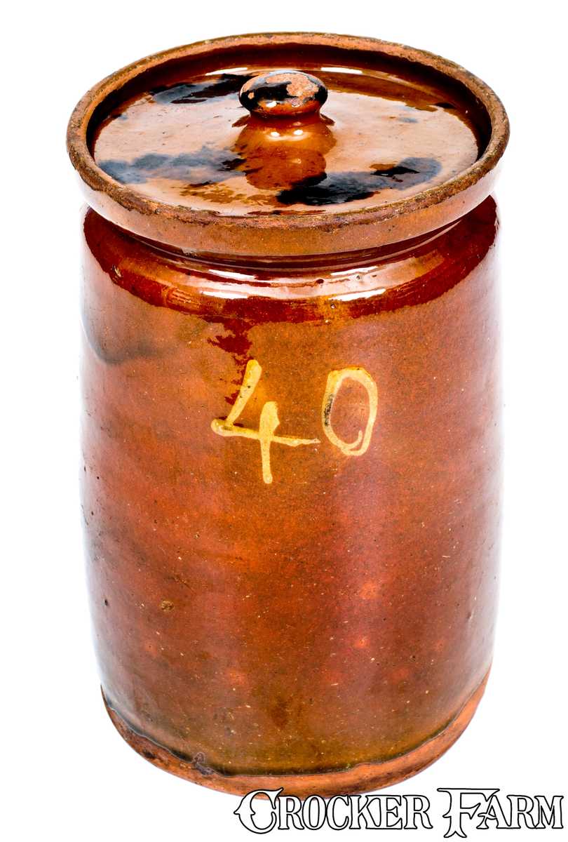 Rare Numbered Redware Apothecary Jar (40), attrib. Nathaniel Seymour, East Hartford