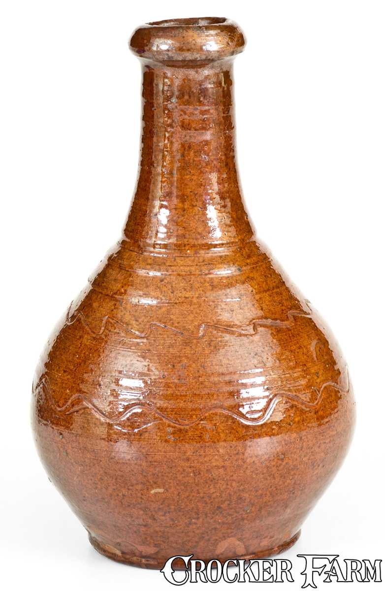 Glazed Redware Bottle, Inscribed "William / Harrison / April 20th / 1840".
