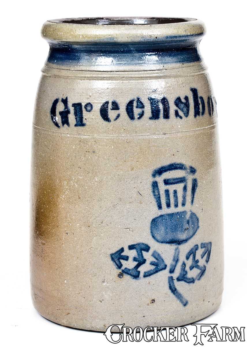 Exceptional Greensboro, PA Stenciled Thistle Jar