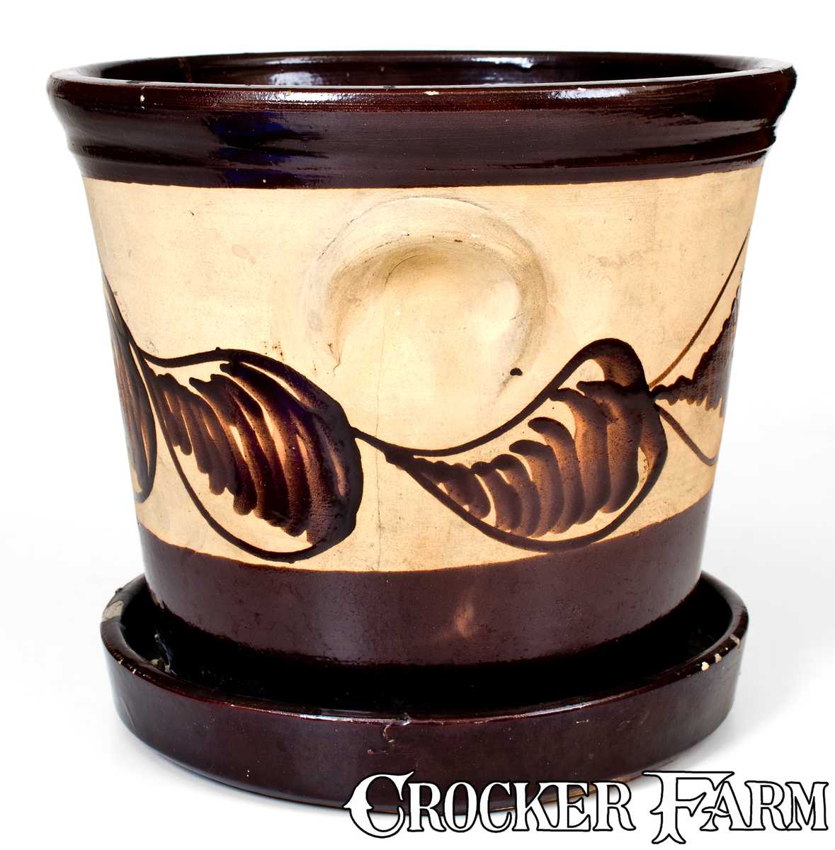 2 Gal. New York State Stoneware Flowerpot with Profuse Albany Slip Decoration