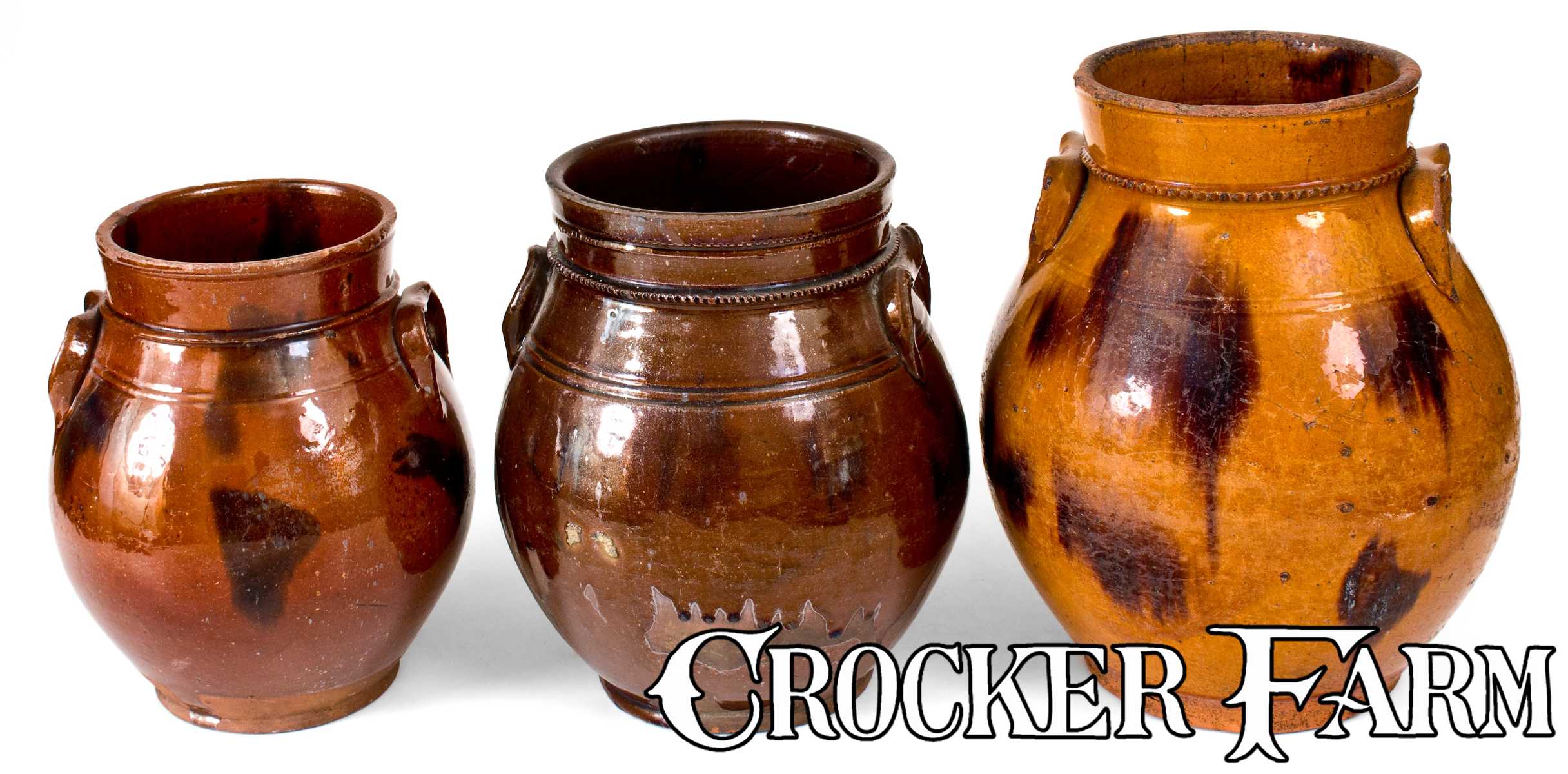 Lot of Three: Manganese-Decorated Redware Jars, probably Central NJ