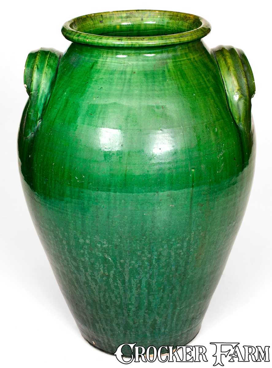 Large-Sized Redware Jar with Vibrant Green Glaze