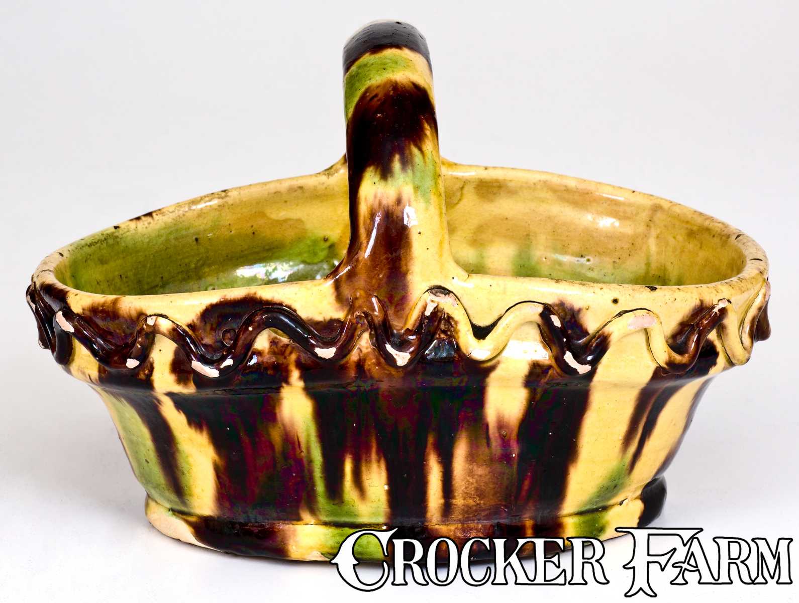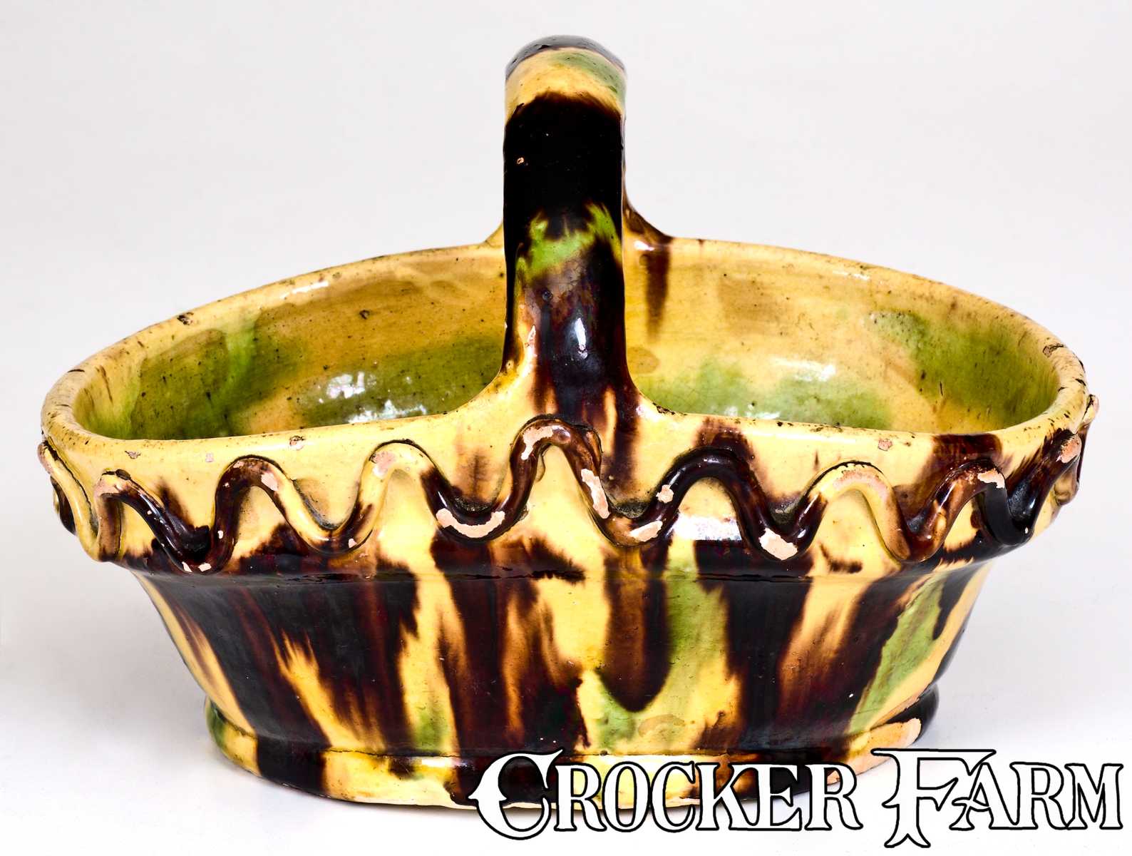 Unusual Multi-Colored Redware Basket attrib. George Wagner, Carbon County, PA