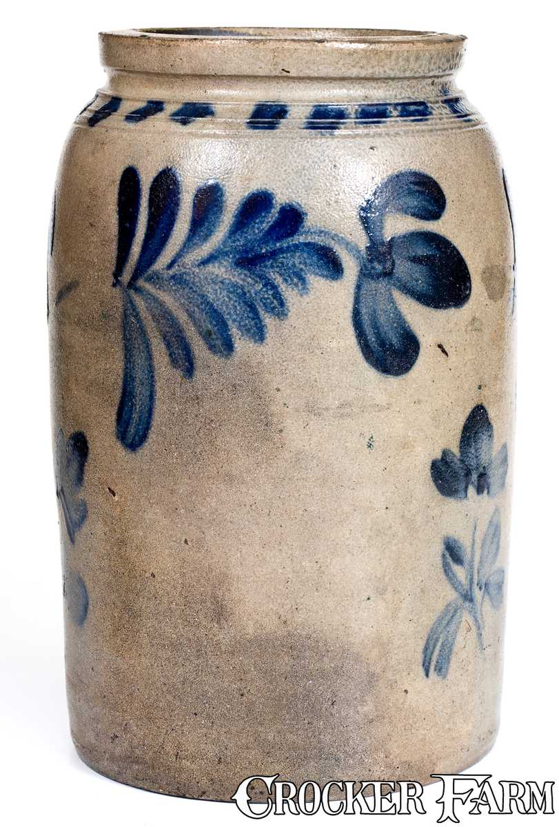 Unusual Remmey Stoneware Jar w/ Floral Decoration, Philadelphia, PA