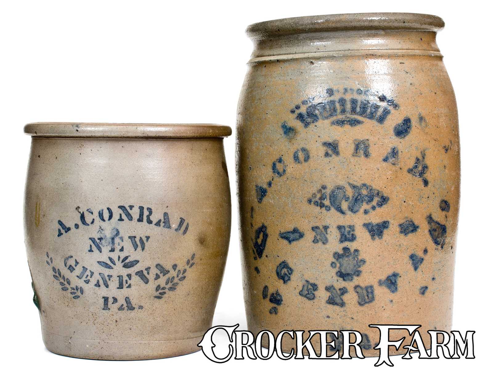 Lot of Two: A. CONRAD / NEW GENEVA, PA Stoneware Jars, One Double-Sided